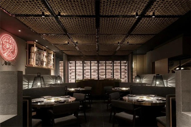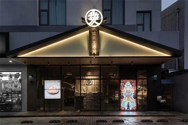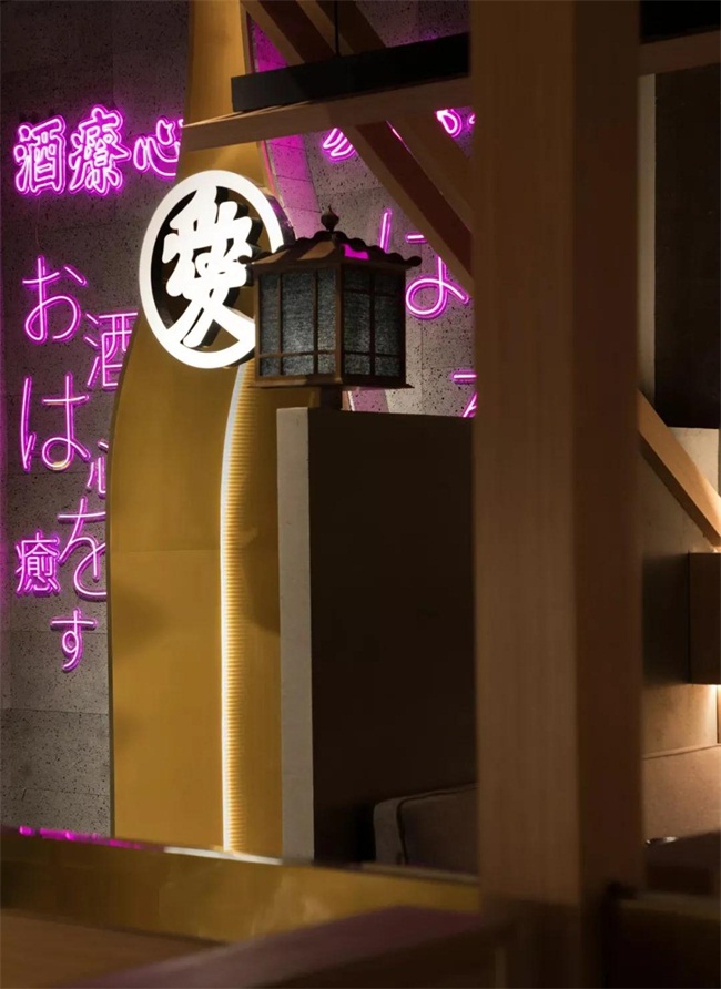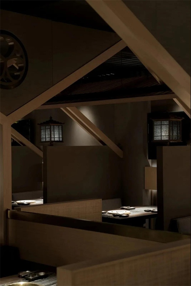 愛燒肉居酒屋設計理念還原了日本狹窄擁擠的街道形象,餐廳的入口設計為三角形的坡屋頂,意圖用強烈的三角形房頂來表達日式建筑 。
