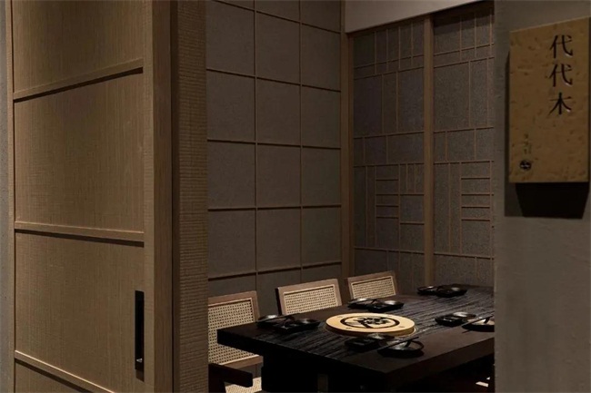 十人座位的日式包房,運用木質天花和紙拉門營造日式的用餐環境,使整個空間顯得寧靜而又溫馨。