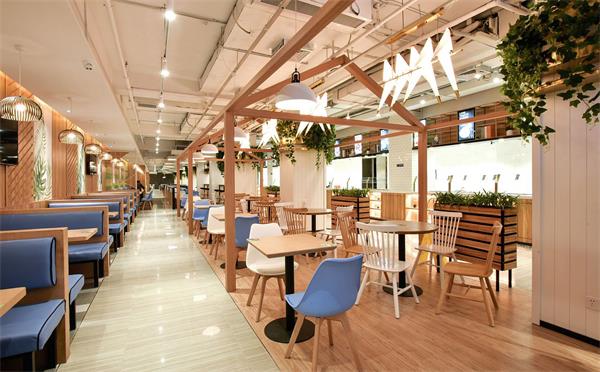 在傳統(tǒng)的學(xué)校食堂室內(nèi)設(shè)計概念中,食堂設(shè)計更單一,人們一天吃飯,食堂是老師和學(xué)生吃飯穿的地方,也是老師和學(xué)生一天下課后放松的地方。學(xué)校食堂是為教師和學(xué)生提供一日三餐不可缺少的生活場所,除了為教師和學(xué)生提供生活身體不可缺少的物質(zhì)食物功能外,還具備為教師和學(xué)生提供精神食糧的功能——,需要進(jìn)行舒適的休息。