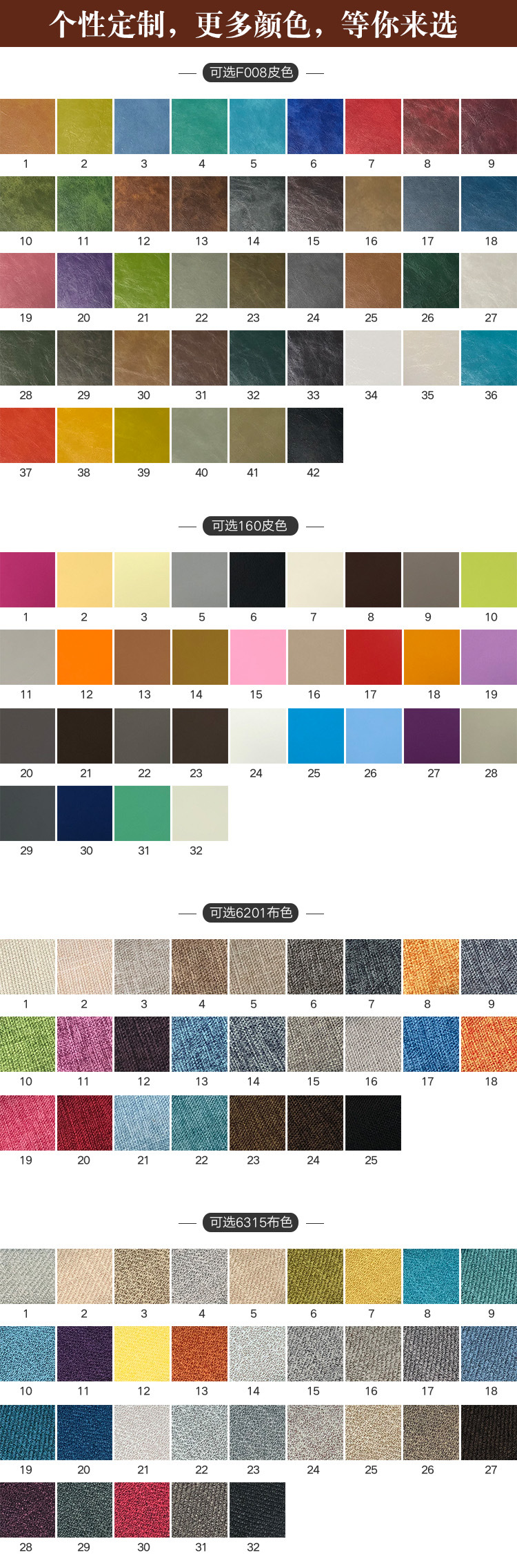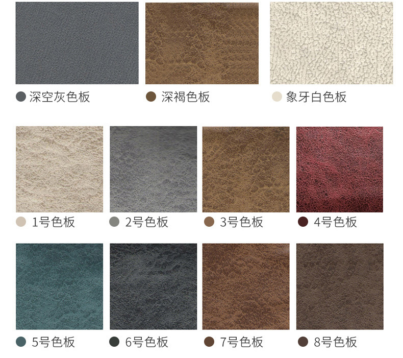 沙發的飾面以真皮和布藝為主,包括仿真皮、超纖皮、PU革在內的不要考慮。真皮沙發50%的成本是牛皮,其中以意大利進口頭層牛皮為最佳,其皮胚柔韌牢固,皮面的處理部位少,手感光滑柔軟、氣味淡較為環保。其次就是國產牛皮,中端產品比較常見。在選用皮料時,一定要考慮性價比,我們建議在不同場所根據實際情況,用真皮與人造皮革搭配,既經濟實惠又保證以后更換面料方便性。我們建議與人體直接關系的部位,列如生墊就用真皮,增強坐感的舒適和耐用。其它不與人體直接關聯的部位列如靠背的后面扶手的后面就用人造皮革飾面