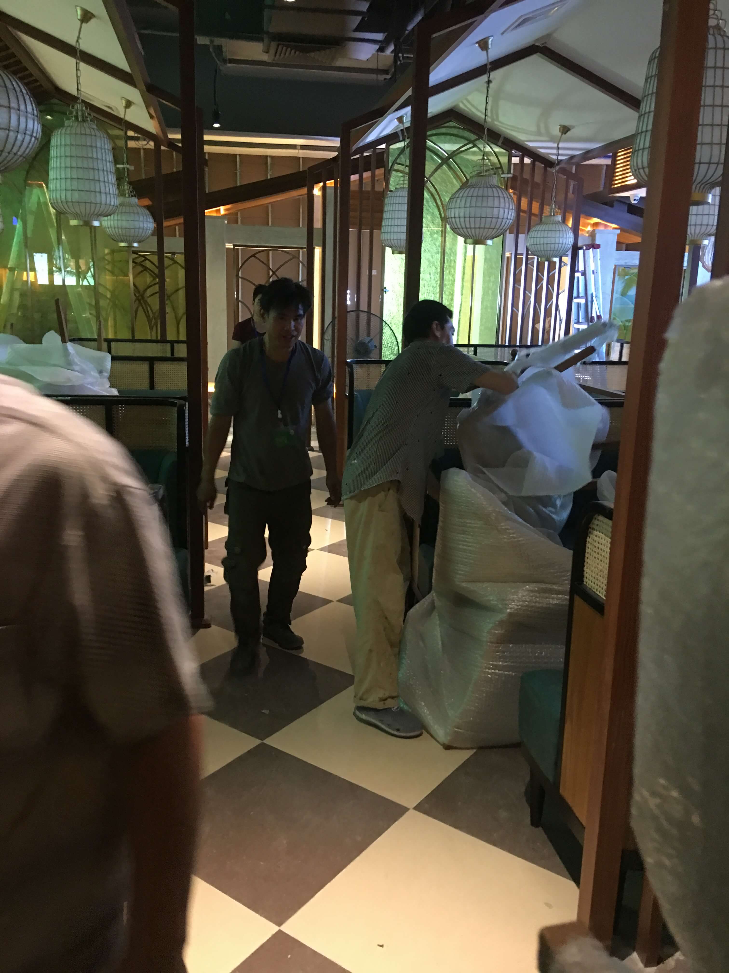 2、貨車需停在最靠近餐廳的位置,把家具全部卸完,在往餐廳搬運;