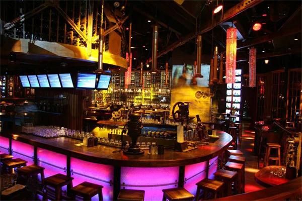 蘇荷酒吧的室內(nèi)設(shè)計以工業(yè)風(fēng)元素作為整個空間的主元素,用鋼鐵、齒輪、玻璃、舊原木等材料,來營造厚重粗狂、奔放自由的娛樂氛圍,同時,融合后工業(yè)時代的時尚輕松和維多和亞時代的繁華藝術(shù),讓進入酒吧的顧客對藝術(shù)、自由、華麗、時尚和頹廢的新感覺。