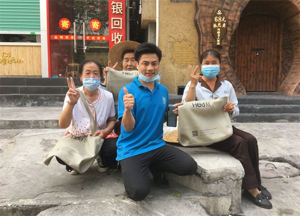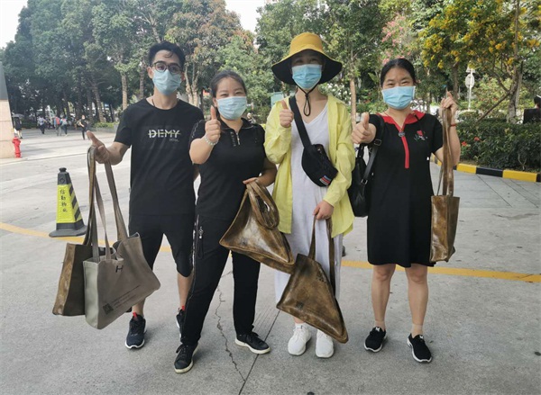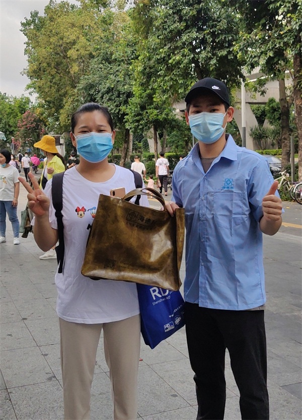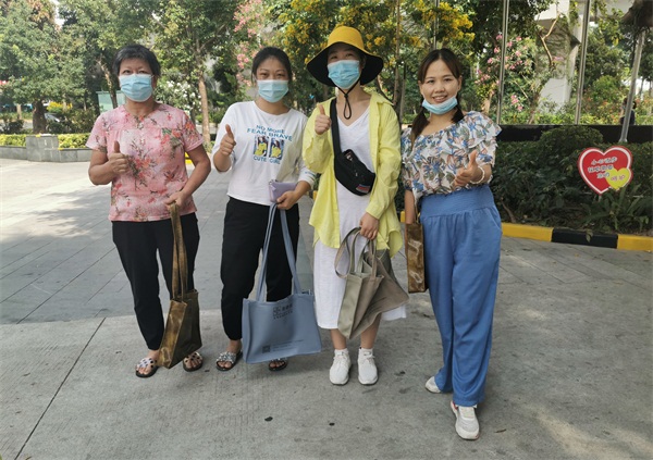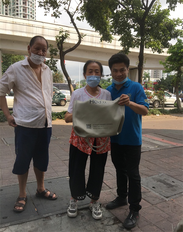 2020年5月10日,早上8點半。海德利的小伙伴們在公司集合,集體前往今天的目的地——深圳橫崗人民公園。上午9點10左右,來到了深圳橫崗人民公園,小伙伴們每人拿一部分手袋,準備向路過的母親們免費贈送手袋。上午9點20左右,兩兩一組的小伙伴分散開來,開始向路過的母親們免費贈送手袋。
