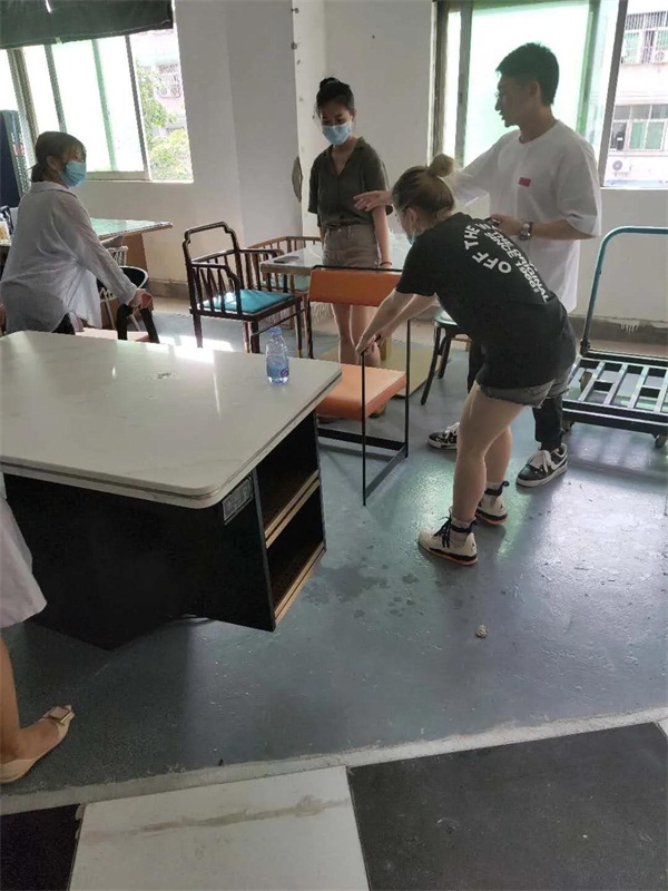 在海德利的家具展區(qū),擺放著各種不同特色的家具成品。大誠(chéng)當(dāng)?shù)赖脑O(shè)計(jì)師們正在家具前仔細(xì)挑選,用手摸、用尺量、用鼻聞,用屁股坐,有的打開(kāi)柜子看里面,有的翻過(guò)椅子看底部,有的打開(kāi)手機(jī)電筒看紋路,有的用靠尺來(lái)測(cè)量家具是否平整,來(lái)來(lái)回回,前前后后大概“折騰”了近兩個(gè)小時(shí)。