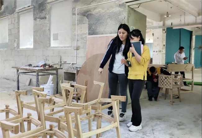 圖:黃晴帶采購部新同事到生產車間了解產品材質