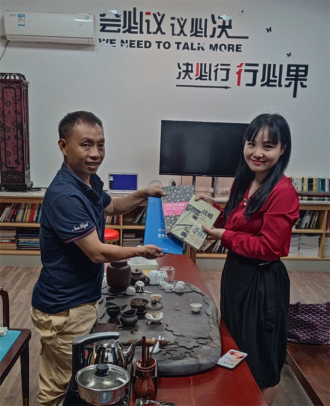 圖:谷先生贈上三本書給姜小姐