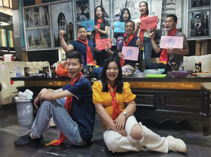 酒足飯飽后,大家還一起做了幾個小游戲,一次次把活動推向了高潮!不知不覺已經到了晚上十點多,有些同事準備回家了,我們一起拍了具有紀念意義的視頻,大家帶上紅領巾,為青春干杯,一起高喊:“無奮斗、不青春”!這就是我們的海德利,值得我們所有小伙伴為之拼搏、奮進!