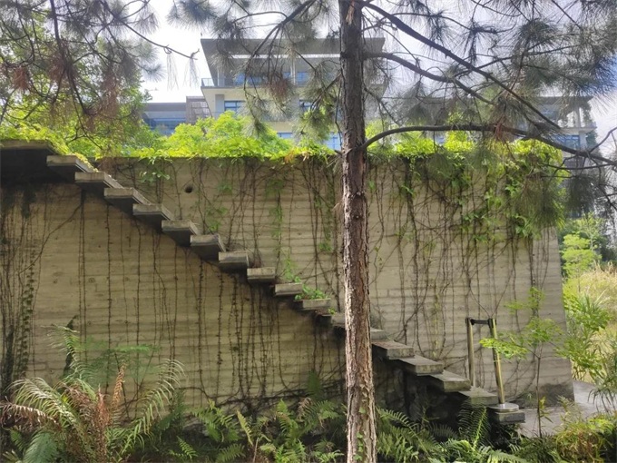 此外,梧桐島地面上的設計也是不落俗套。按春夏秋冬四季特色而專門設立的不同植被的四島、隨處可見的綠植與工業現代風的建筑結合。清水混凝土、野生小動物、抿石外墻建筑、屋頂果園、仿自然路燈,就連地下室也能看見大樹與陽光,極具特色與個性。