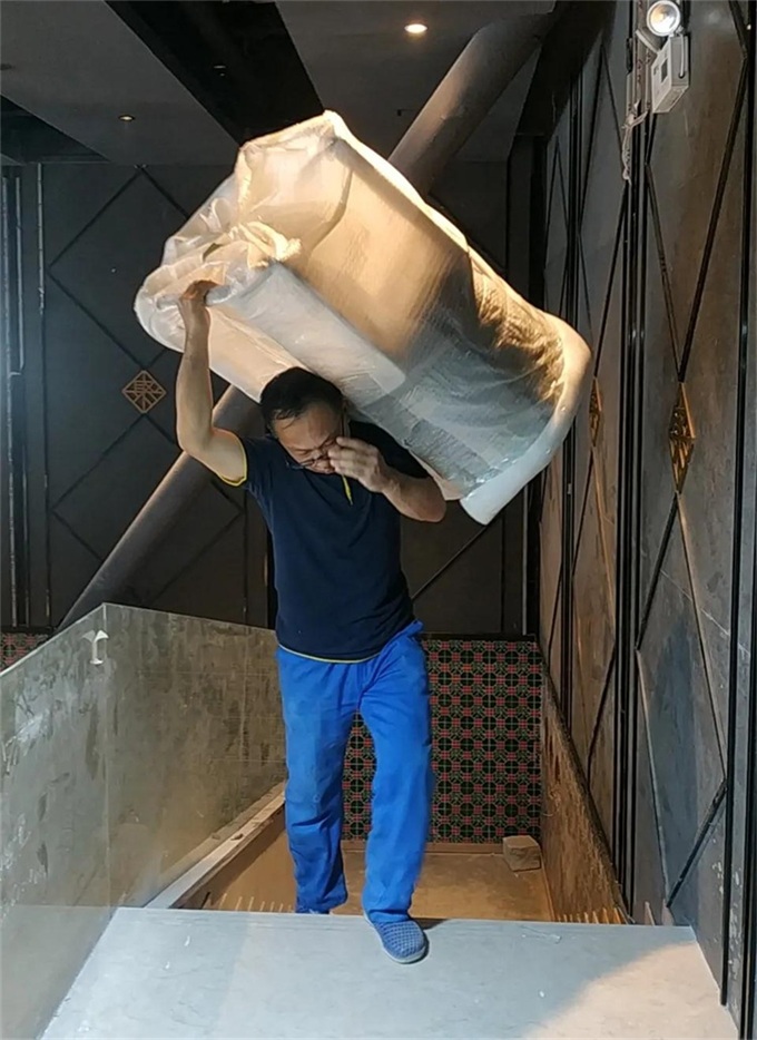 我們從晚上22:00開始卸貨并搬進常來小聚餐廳,直到第二天凌晨5點才全部搬完所有家具。我們4位搬運師傅最后累得都倒下了,都動彈不了。