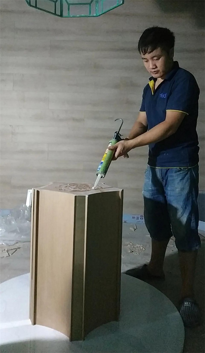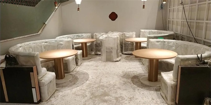 當我們把超直徑1800mm的大理石臺面從一樓搬到二樓,動用了7個人,才順利完成任務。又是一天辛苦勞作,終于把所有桌子安裝好,并把所有家具擺放到位,等待客戶的檢測。