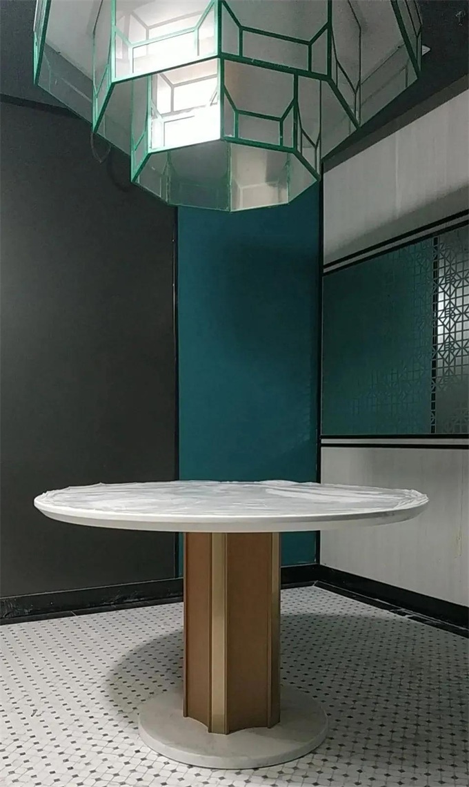 圖:大理石底盤不銹鋼桌柱大理石臺面餐桌