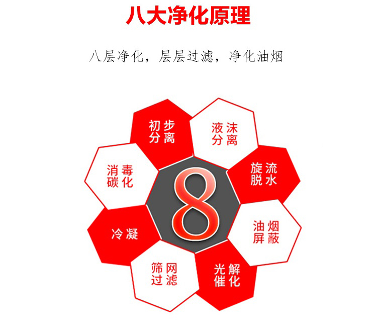 4、油煙凈化裝置外部箱體采用全不銹鋼, 產(chǎn)品結(jié)構(gòu)為電磁爐+吸油煙機+凈化器+凈化液 運行噪音為56db 整體尺寸為 660mm*650mm*740mm 整體額定功率150W,電機80W。