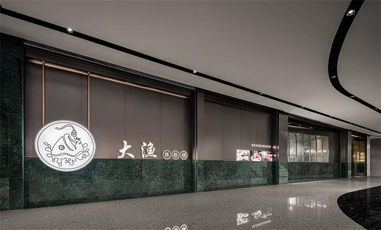 本案餐廳位于武漢江宸天街,是繼深圳中心城大漁后的又一次新店小升級。本案以“乘帆破浪·大海捕魚·滿載而歸”的故事為空間設計主線;從場景中提取“弧形海浪、帆船之形、垂釣魚竿”等元素解構重組符號,以現代手法打造一個時尚年輕、輕奢簡約的沉浸式體驗空間,為顧客提供愉悅的用餐體驗。