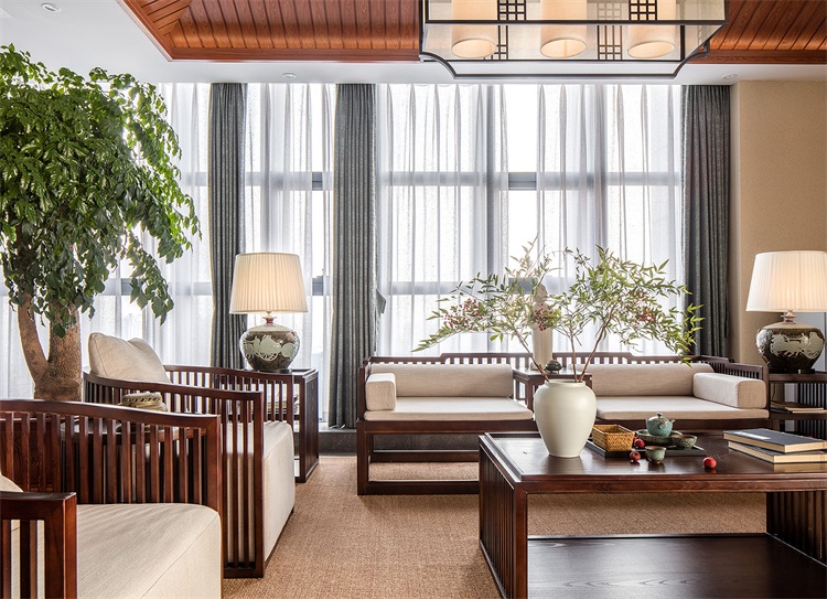 本案以現代的審美需求來打造富有中式韻味的空間,將設計注入了一股嶄新的東方風格,中國傳統美學的脈絡得以蔓延下去。設計師著力于構思和造詣,尋求自然與生活空間的呼應,沉淀浮躁的心性,出于自然,高于自然,讓空間多了一份含蓄之美。