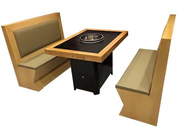 實木邊框鑲嵌火燒石桌面升降無煙火鍋桌
