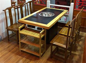 串串香火鍋店大理石仿古實木火鍋桌電磁爐燃?xì)庠畈妥?/a>