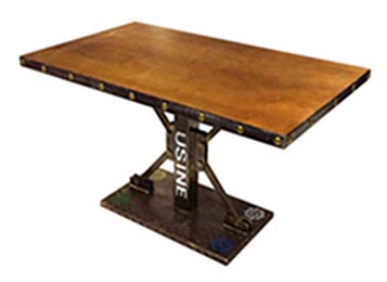 老舊重工業風餐桌_鐵藝銅釘包邊_工字鋼材餐腳個性西餐桌子