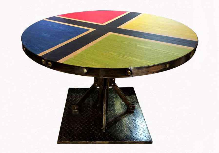 西餐廳主題工業風方餐桌_仿古實木銅釘鐵皮包邊_定制桌面印花餐桌