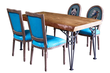 水管鐵腳餐桌主題餐吧實木家具餐桌椅