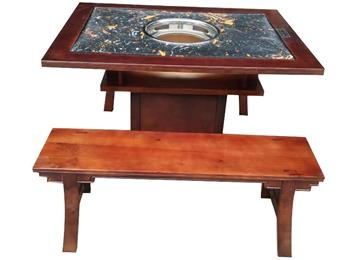 仿古田園風實木大理石柜式麻辣英雄火鍋桌