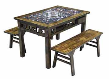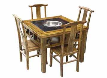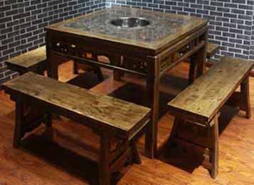 仿古雕花實(shí)木大理石火鍋?zhàn)酪谓M合