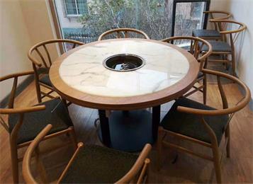 4人位實(shí)木鑲嵌大理石下沉電磁爐火鍋?zhàn)?/a>