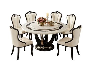 主題餐廳歐式大理石圓桌黑白時尚后現代簡約8人園桌子