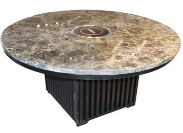 大理石圓形電磁爐火鍋桌_不銹鋼方桶腳一體無煙火鍋桌